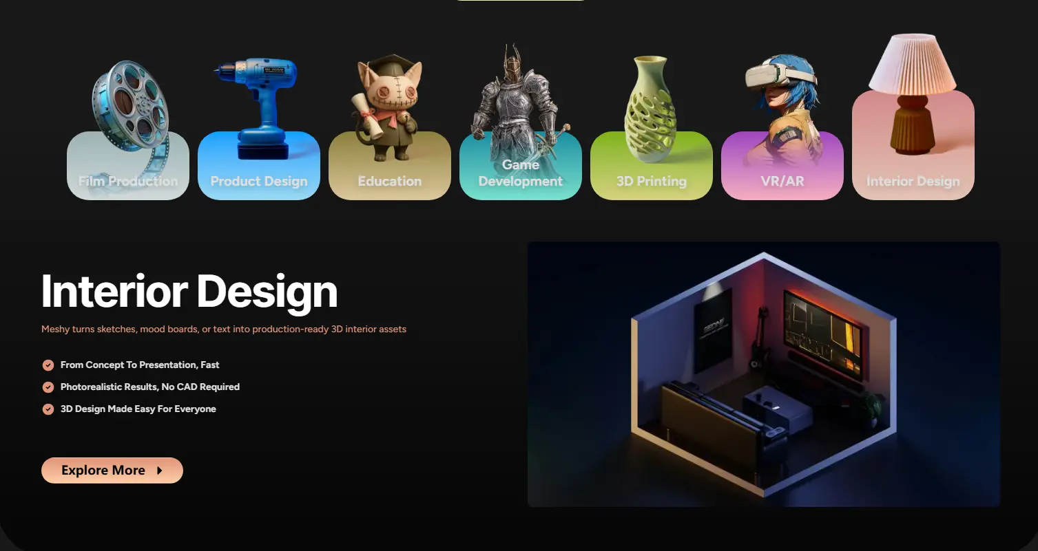 In simple terms, Meshy 6 Preview is a powerful AI model designed to turn text prompts and images into high-quality 3D assets. It’s a significant upgrade over previous versions and even many other competing tools, focusing on delivering stable, structured, and reliable meshes.